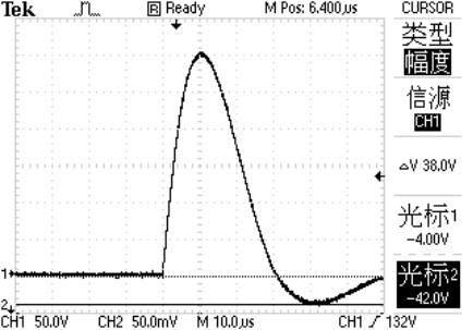 輸出波形 | 波前時(shí)間:8us±10% ,半峰值時(shí)間:20us±10%,反向電流不超過(guò)20%; |