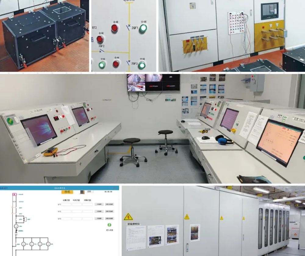 客戶在電網(wǎng)受限制條件下,本系統(tǒng)解決了高壓直流大功率電壽命及短路測試需求。系統(tǒng)中精準(zhǔn)保護(hù)開關(guān)(IGBT)解決了直流大電流通電時間的精準(zhǔn)控制(如耐受時間5ms),誤差不超過0.1ms;系統(tǒng)中無感負(fù)載阻抗解決了時間常數(shù)最小可以控制到0.1ms以內(nèi)。 系統(tǒng)試驗(yàn)?zāi)芰梢园葱枨蠖ㄖ?,試?yàn)電壓可以滿足2000V以下試驗(yàn)需求,短路電流可以滿足100kA以下試驗(yàn)需求。